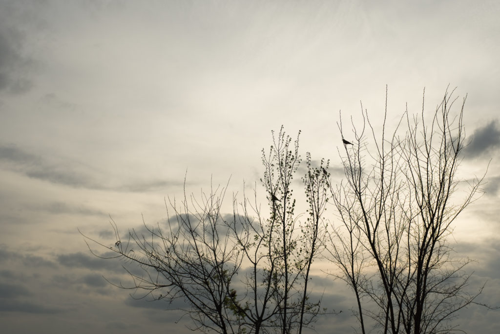 watching the birds hop along on the top of a dumpster outside this shitty chain restaurant bare twigs border the gray expanse of sky pine needles above power lines in this cold documentary of winter an extended ending is unnecessary I can say with no hesitation I don't want to watch anymore I'll leave the gifts I made in the carousel at the airport in Tulsa
